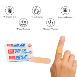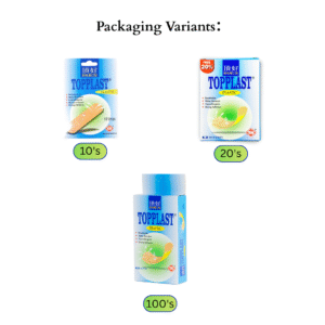 Topplast Plastic Plaster is designed for reliable and comfortable protection of small cuts, scratches, and minor wounds. Made from waterproof and flexible plastic material, it shields wounds from dirt and moisture while allowing airflow for faster healing. Each plaster is soft on the skin and provides a secure fit, making it ideal for daily use and first aid kits.